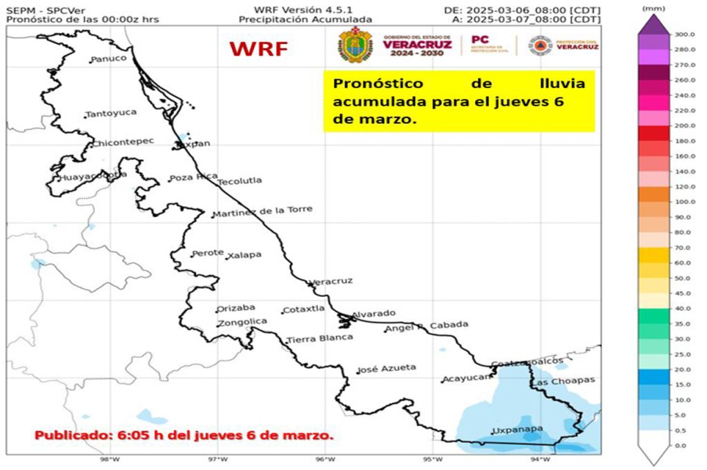 Las condiciones para lluvias serán limitadas en el estado de Veracruz, excepto en la zona sur, donde se pueden presentar algunos eventos aislados y ligeros, así lo informó la Subdirección de Estudios y Pronósticos Meteorológicos de la Secretaría de Protección Civil local.